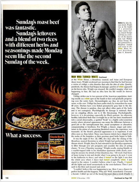 Za njega je ovo iskustvo bilo traumatično jer je u pozorištu koje mu je bilo druga kuća, fizički izgled bio izuzetno važan. U to vreme je bila popularna parola među crnom populacijom „Crno je lepo“, „Ponosan sam sto sam crn“, a on je postajao beo. Nije ni sebi mogao da objasni šta mu se dešava, a kamoli ostalima. Njegova priča počinje ovako: