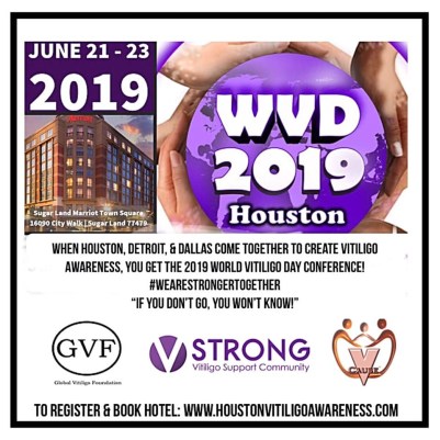 1. Proslava Svetskog dana vitiliga u Sjedinjenim Američkim Državama održaće se od 21. do 23. juna 2019. godine u Hjuston, Teksasu. Trodnevni događaj dostupan je odraslima, tinejdžerima i deci. Kotizacija od $135 uključuje pristup događajima, materijalima, poklone i obrok tokom vikenda.